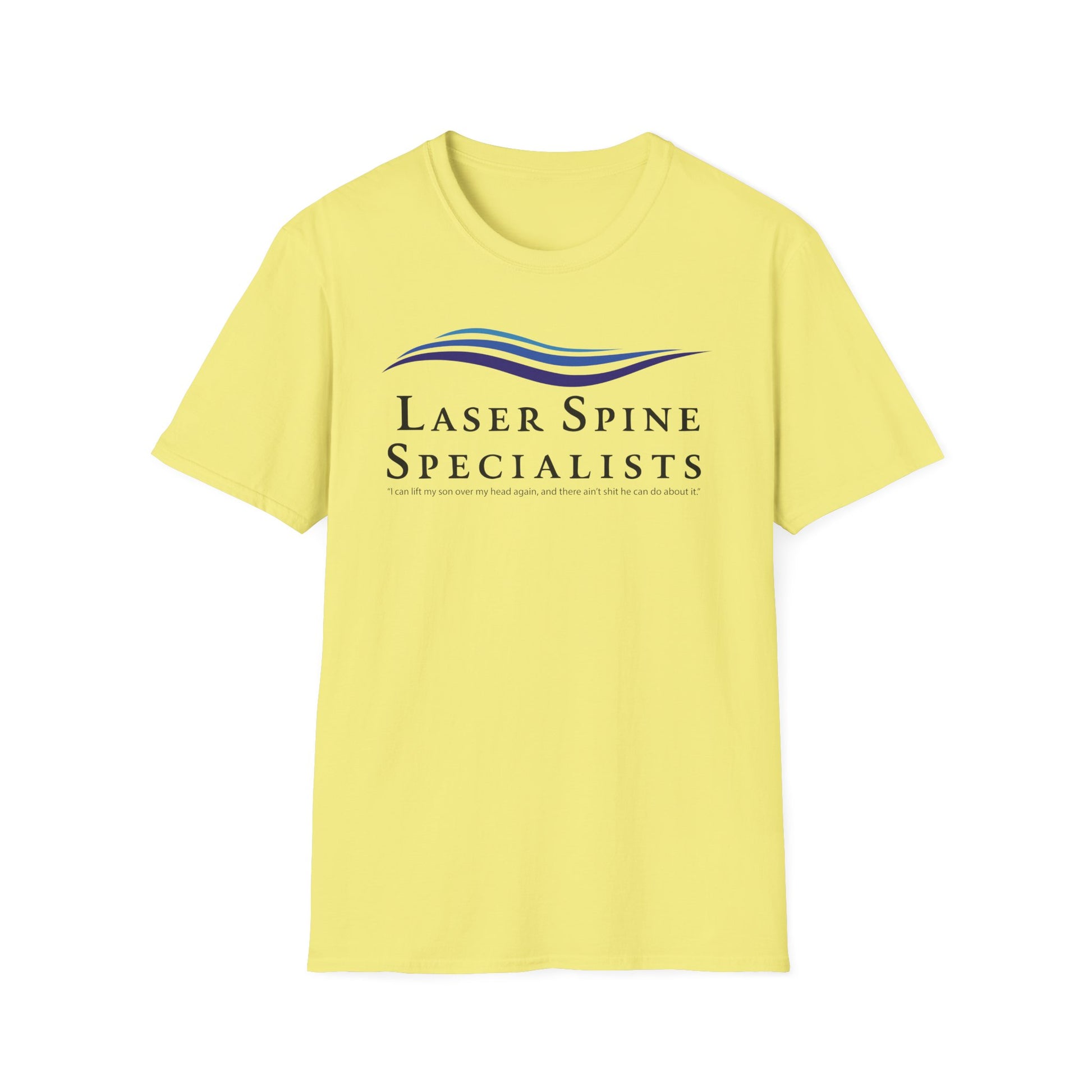 Thanks to Laser Spine Specialists, I can finally fight my wife's new husband, Danny Crouse, not to mention get my money back from Robbie Star at Superstar Tracks Records. I can lift my son up over my head again, and there ain't sh## he can do about it. Funny ITYSL Adult Unisex T-Shirt. Ideal for gifting on birthdays, holidays, and as a special treat for yourself.