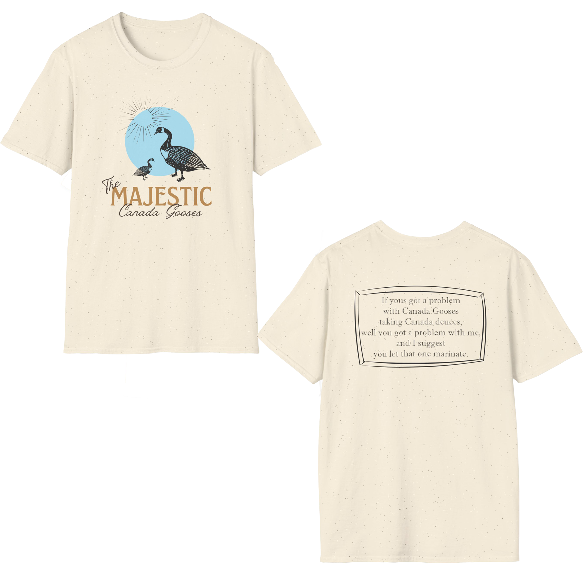 If you got a problem with Canada Gooses taking Canada deuces, well you got a problem with me, and I suggest you let that one marinate.